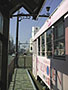 <1> 架線がセンター・ポール式で、すっきりしている。架線が蜘蛛の巣状になることがないこと <2> 建設省の路面電車補助金第1号で、駅前の150メートル延伸が実現、駅前での乗換えが楽になったこと。