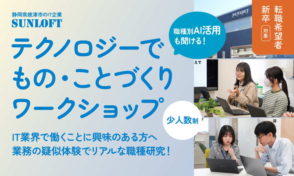 就職活動や転職活動が本格化する前に、ミニ座学・実践を通じた業務の疑似体験をしながら職種研究を深める機会としてワークショップを企画しました。職種別のAI活用情報や現場社員のフィードバックを得ながら、自身の強みや課題を確かめられるプログラムです。定員10名以下の少人数制で実施するため相談もしやすく、新卒に限らず、キャリア転職志望者の方もご参加いただけます。職種研究にスキルアップ、腕試しに、ぜひご参加ください。