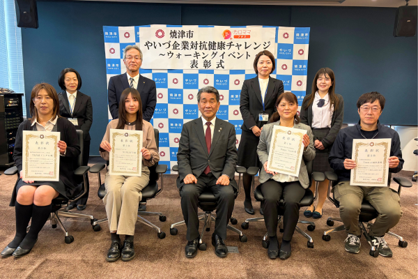 ウォーキングイベントは2025年11月17日~12月14日に実施されました。焼津市内の事業者を対象に、従業員が健康管理アプリ「カロママ プラス」を使い、一定の歩数目標の達成率を図る取り組みです。サンロフトは対象事業者の中で達成率が最も高く、1位を獲得しました。